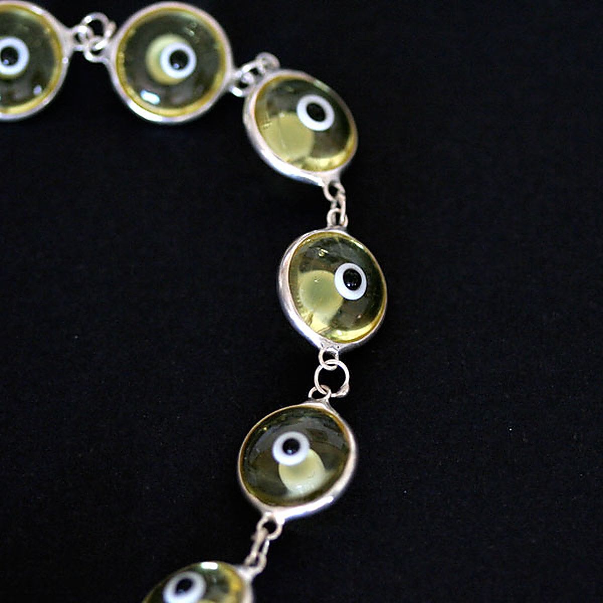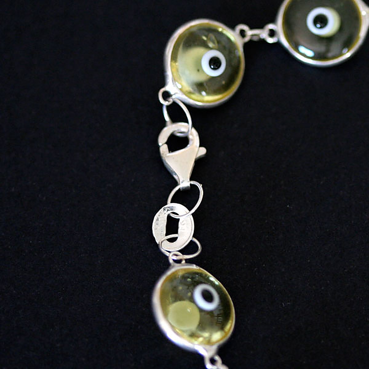 Pulseira de Prata 925 Olho Grego Amarelo 18cm / 1cm